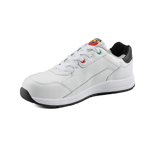 S3 Sicherheitsschuh in cleanem weiss – ideal für Hygiene- oder Laborbereiche. Leicht, pflegeleicht und mit rutschfester Gummisohle.